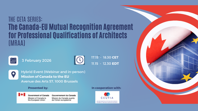 The CETA Mutual Recognition Agreement for Professional Qualifications of Architects (MRAA) is now in force. The MRAA makes it easier to recognize Canadian and European architects’ professional qualifications in each other’s jurisdiction. This important step supports the architecture sectors in both regions and enables new opportunities for collaboration on both sides of the Atlantic.